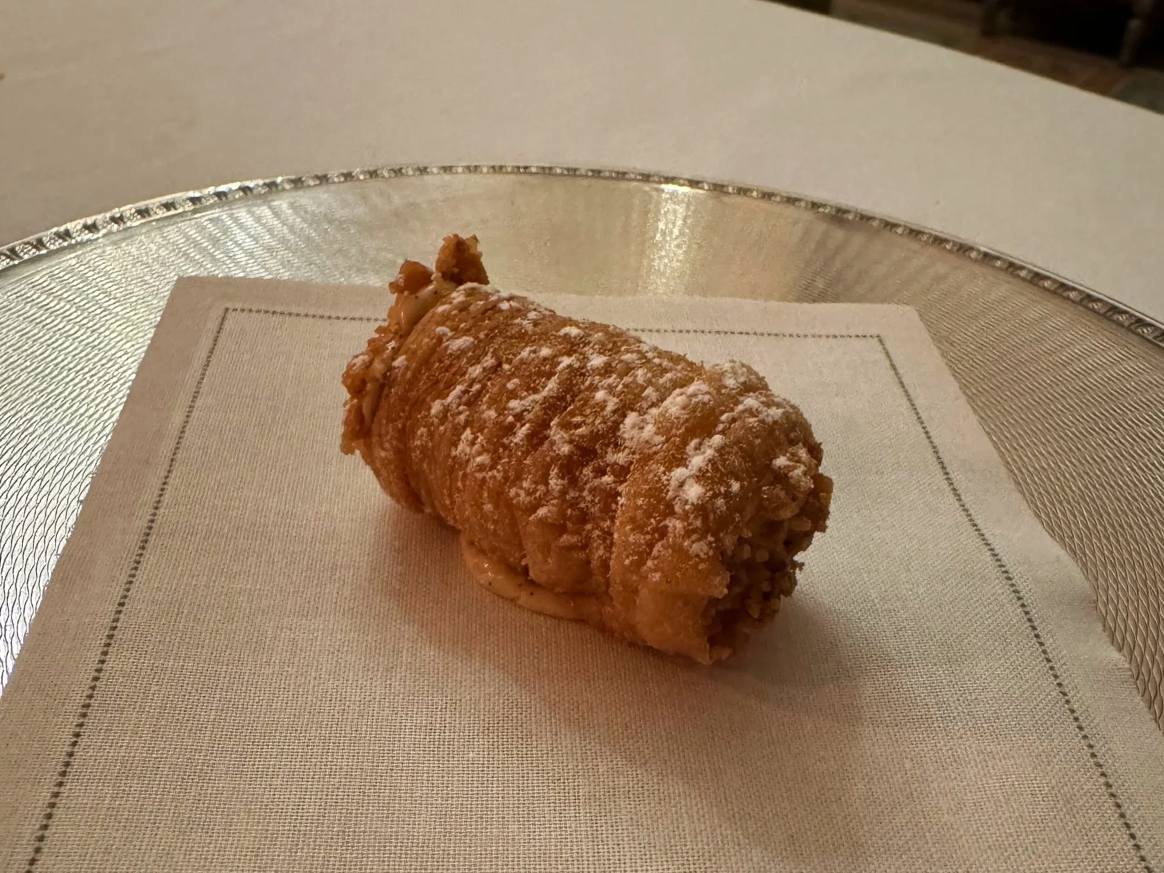 Notwithstanding the decor, the service is friendly and unpretentious. At the end of the night, I told my waiter that one of the desserts, a hazelnut cannoli, was so delicious and better than the one at Mike’s Pastry in Boston I’d had the week before that he graciously brought me two more. The food, under Chef Christophe Pelé at the time of my visit, was the kind of cooking that makes you put your fork down and just sit with it for a second. Or, in my case, type furious notes on my Notes app to document my thoughts on each dish.