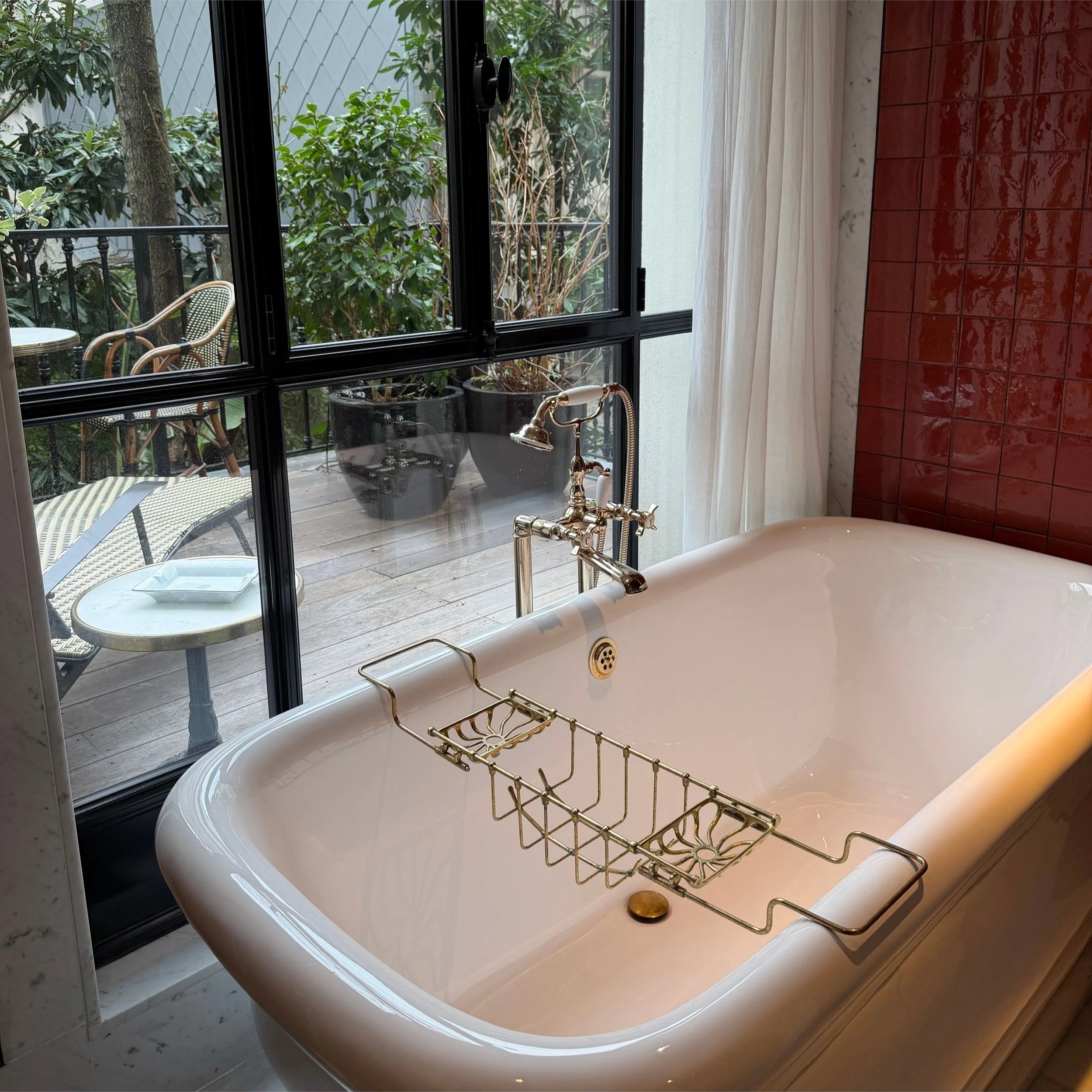La Fantaisie is whimsical in the best possible way – botanical murals, ceramic lamps in the rooms with little snails climbing them as if they were trees, and a signature scent that permeates the entire hotel. The spa is beautiful and a retreat from the busy city outside. If noise is a concern, the garden-facing rooms are your best bet. I wrote a longer post about it in my Hotel Notes.