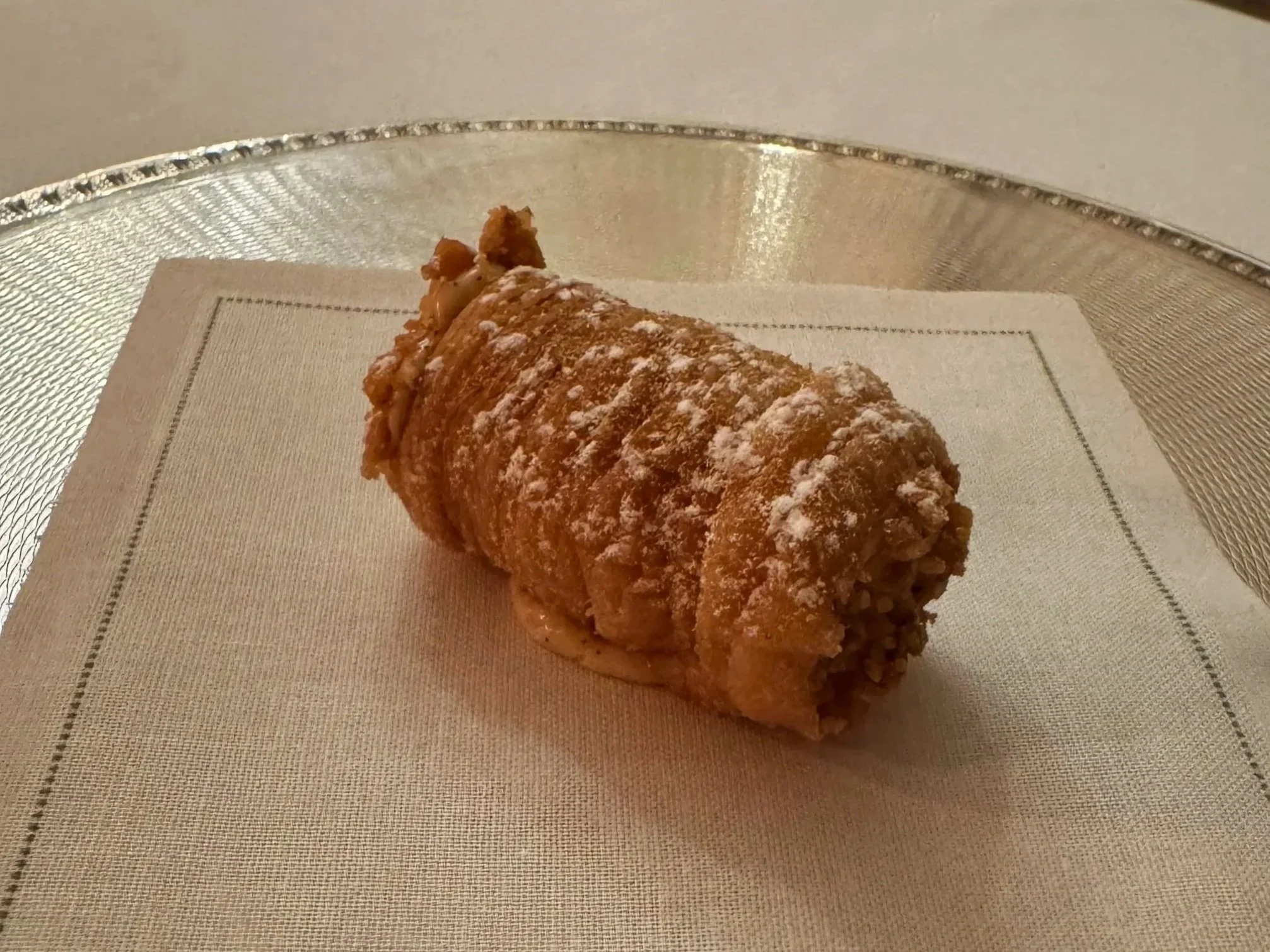 Notwithstanding the decor, the service is friendly and unpretentious. At the end of the night, I told my waiter that one of the desserts, a hazelnut cannoli, was so delicious and better than the one at Mike’s Pastry in Boston I’d had the week before that he graciously brought me two more. The food, under Chef Christophe Pelé at the time of my visit, was the kind of cooking that makes you put your fork down and just sit with it for a second. Or, in my case, type furious notes on my Notes app to document my thoughts on each dish.